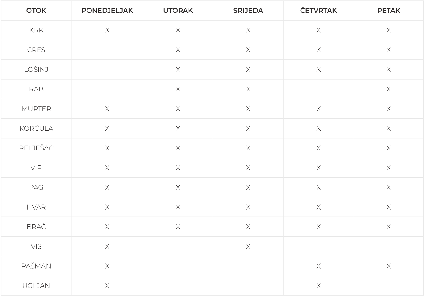 Delivery to Croatian islands that are not listed in the table above is carried out via Hrvatska pošta (Croatian Post), no later than within 10 business days (Saturdays, Sundays and public holidays excluded).