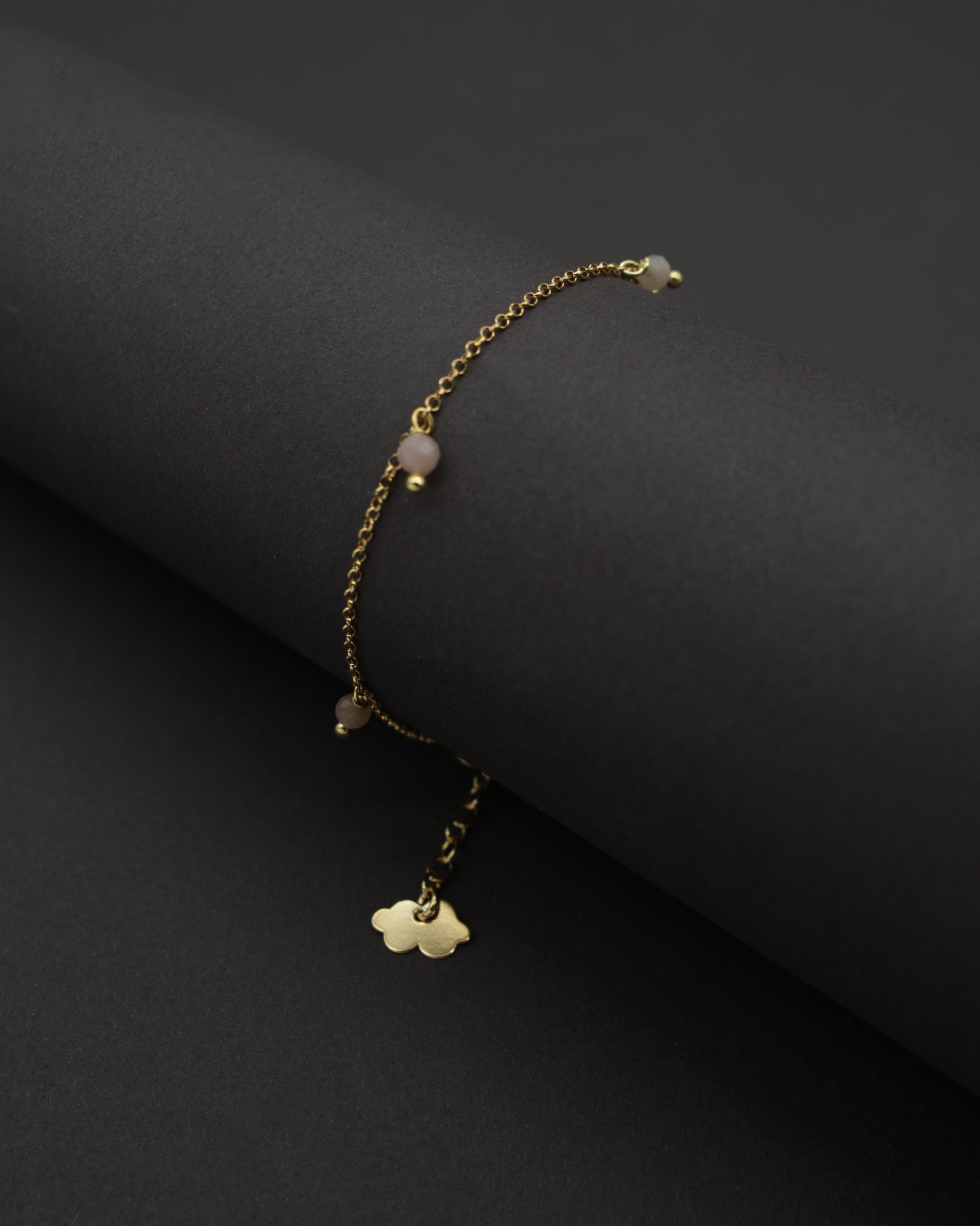 MATERIJAL: 925 Sterling Srebro Dovršavanje: 24k zlatna oplata KAMENI: multi mjesečev kamen Duljina: 16-19 cm podesiva kopča TEŽINA: 1,50 g