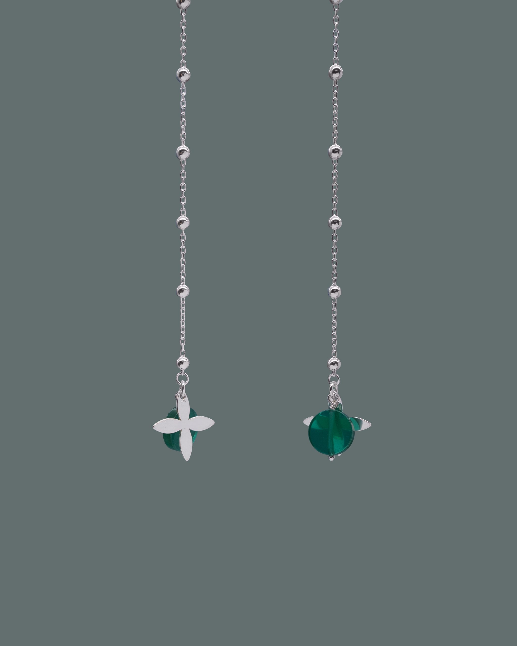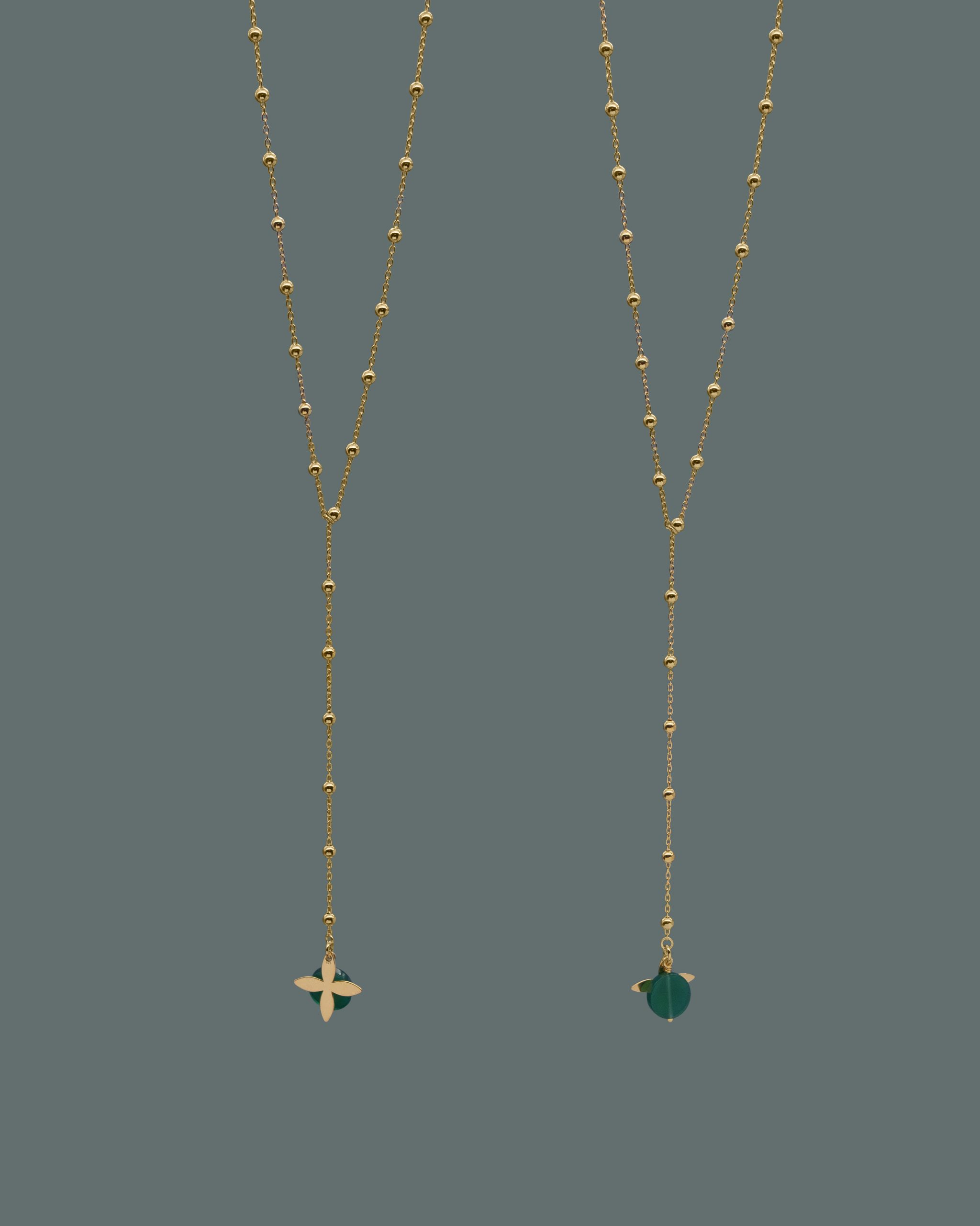 MATERIAL: 925 Sterling Silver FINISHING: 24k Gold plating STONES: green agate LENGTH42 cm around the neck and 9 cm neckline WEIGHT: 5,74 g